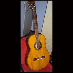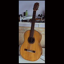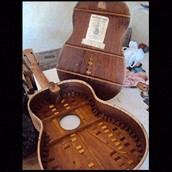 Tenía un barniz antiguo, todo cuarteado, se lijó hasta llegar a la madera y se laqueó con laca nitrocelulosica, la cual es más blanda y acompaña el movimiento y vibración natural de la tapa.